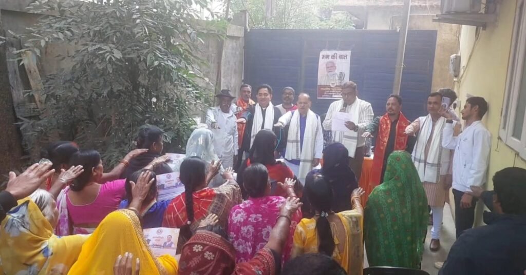 Today, under the Ranchi Metropolitan area, the popular “Mann Ki Baat” programme of the Hon’ble Prime Minister Shri Narendra Modi Ji was collectively listened to at Booth No. 58 of Upper Bazar Mandal along with party leaders, BJP workers, and local residents.